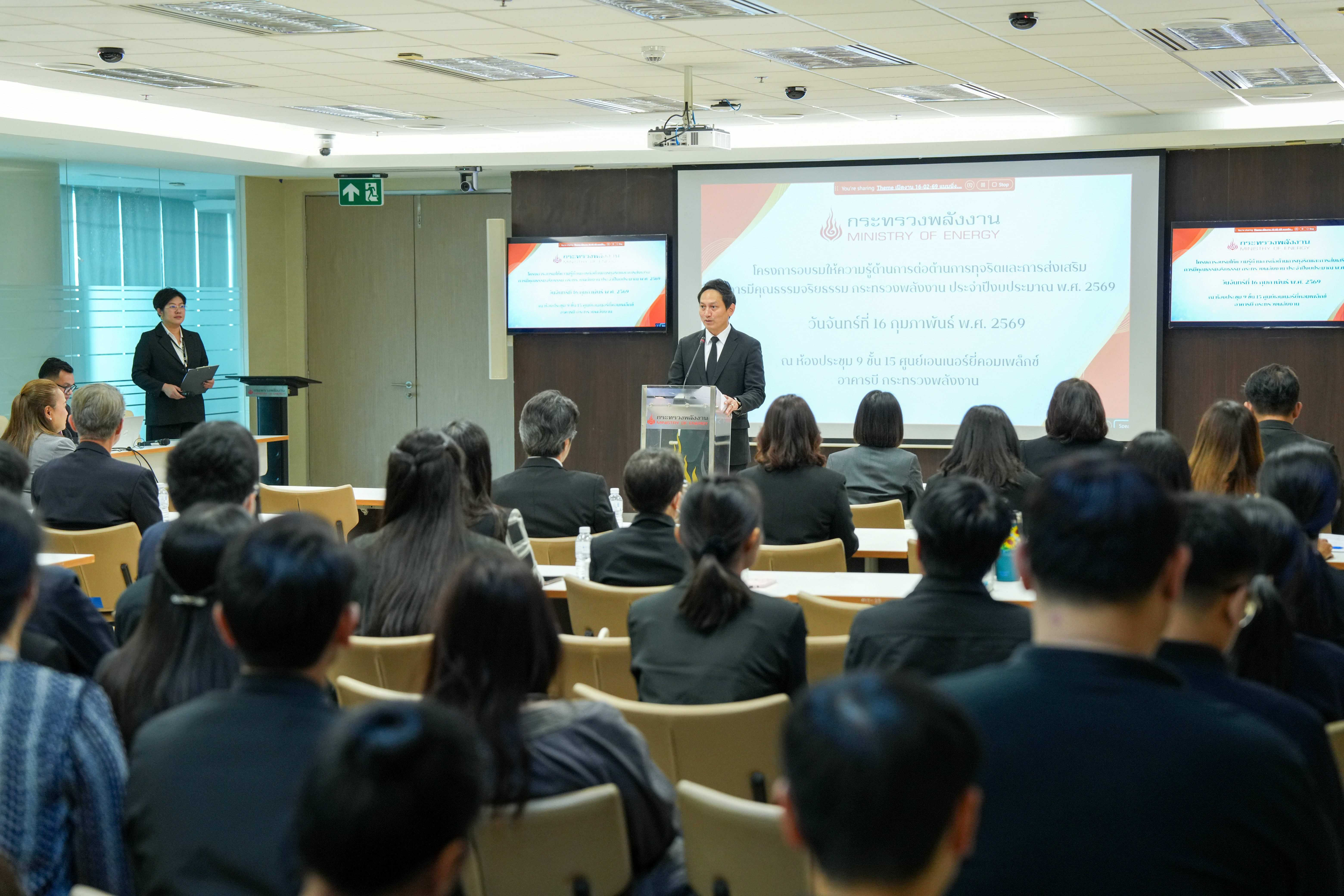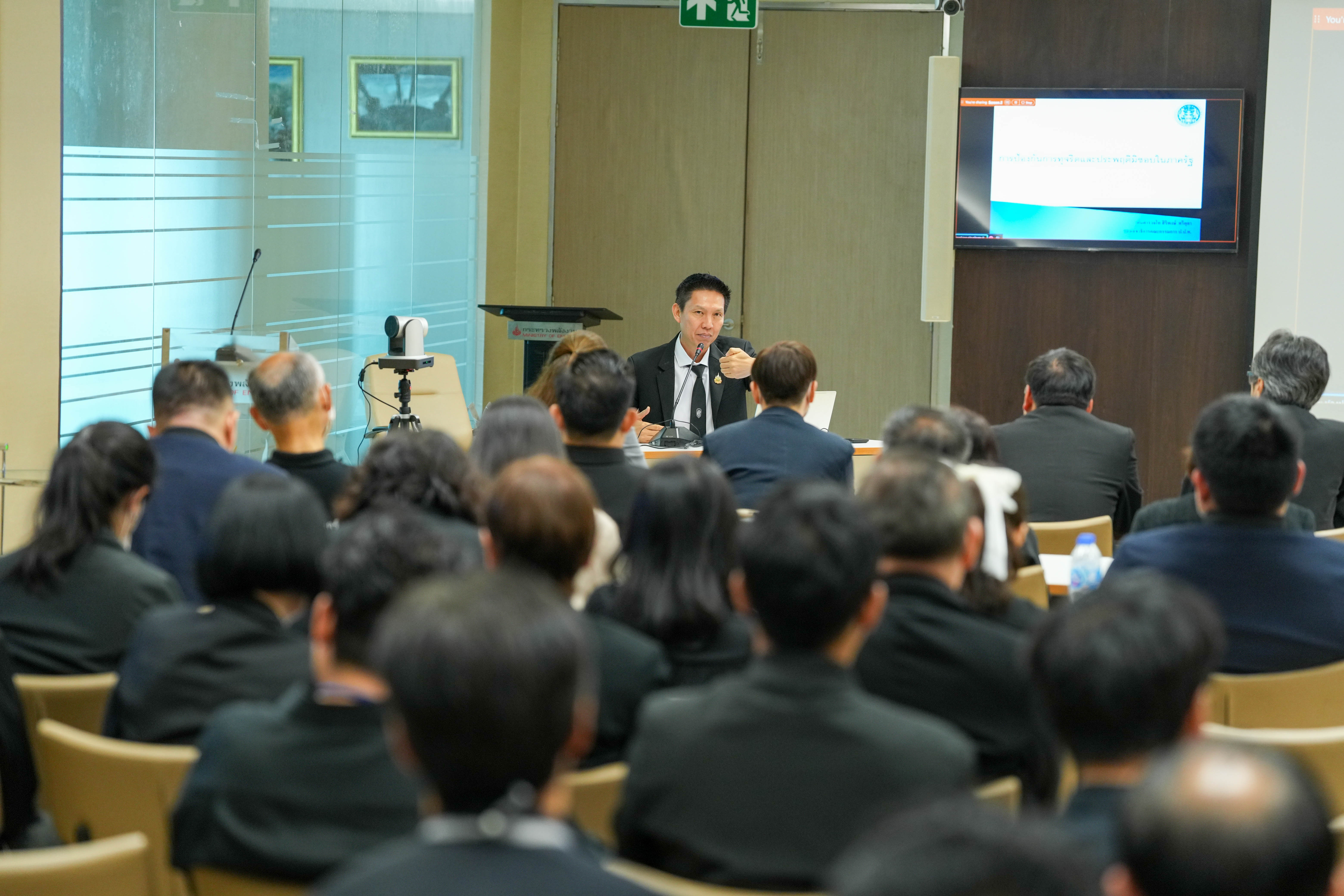 วันจันทร์ที่ 16 กุมภาพันธ์ 2569 นายวีรพัฒน์ เกียรติเฟื่องฟู รองปลัดกระทรวงพลังงาน และหัวหน้าศูนย์ปฏิบัติการต่อต้านการทุจริต กระทรวงพลังงาน (ศปท.พน.) เป็นประธานเปิด โครงการอบรมให้ความรู้ด้านการต่อต้านการทุจริตและการส่งเสริมการมีคุณธรรมจริยธรรมของกระทรวงพลังงาน ประจำปีงบประมาณ พ.ศ. 2569 ณ ห้องประชุม 9 ชั้น 15 กระทรวงพลังงาน โดยมีวัตถุประสงค์เพื่อเสริมสร้างความรู้ ความเข้าใจด้านคุณธรรมจริยธรรม และสร้างความตระหนักรู้เกี่ยวกับความเสี่ยงและรูปแบบของการทุจริต รวมถึงการเรียนรู้จากกรณีศึกษา เพื่อให้บุคลากรสามารถนำไปประยุกต์ใช้ในการปฏิบัติราชการได้อย่างถูกต้อง รอบคอบ และโปร่งใสยิ่งขึ้น