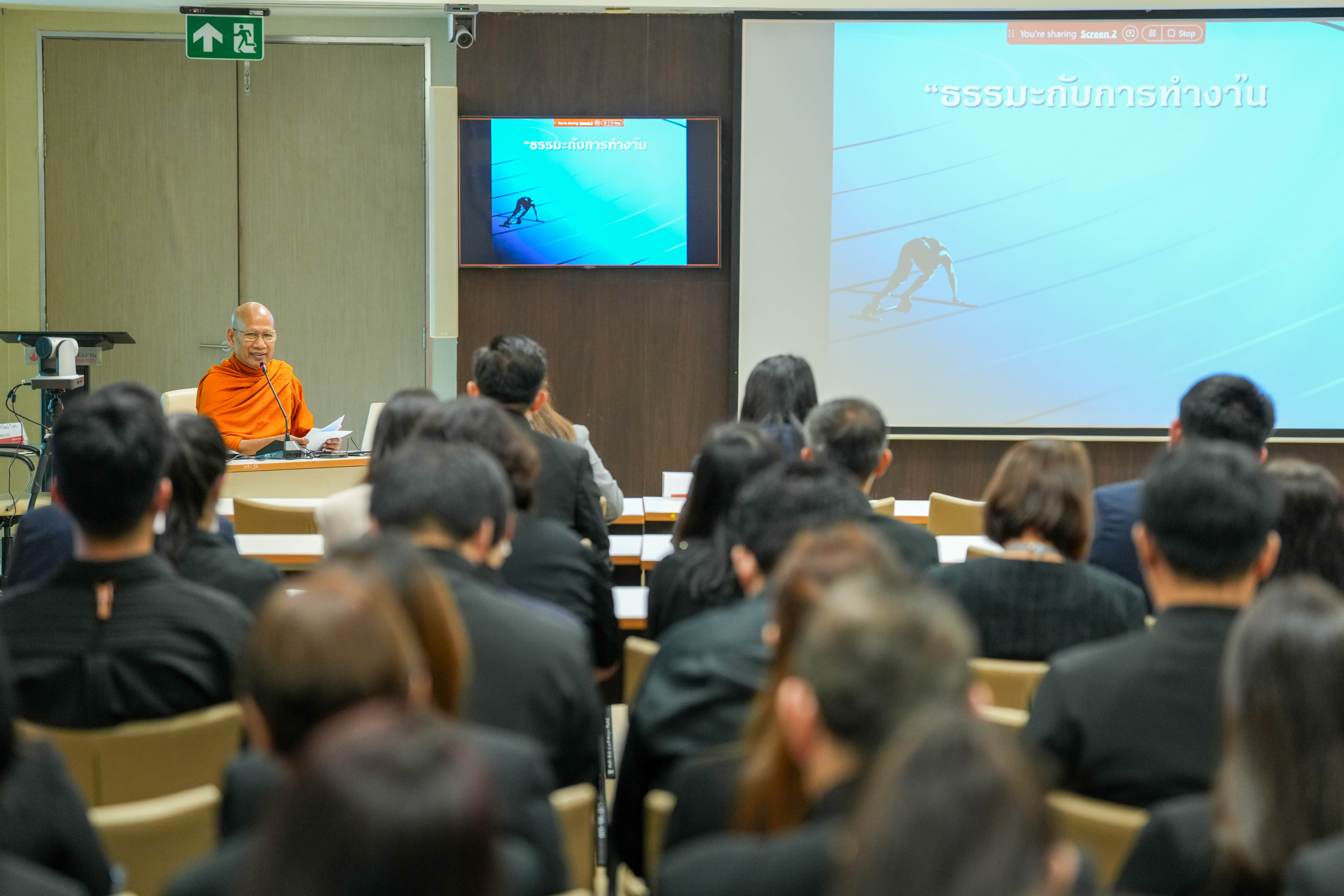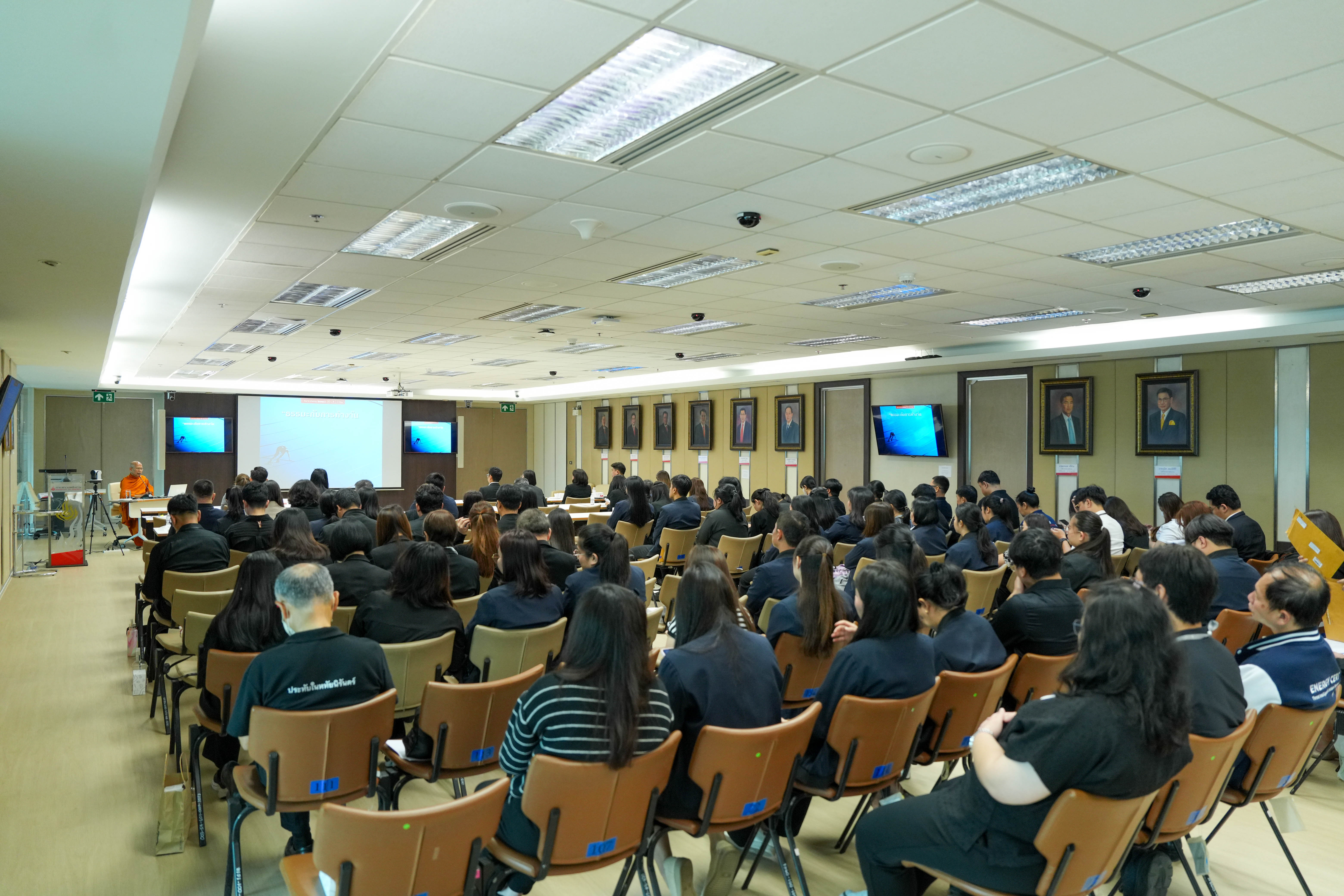 - พระครูภาวนาสิริวัฒน์ วิ.ดร. เจ้าอาวาสวัดแทนวันดีเจริญสุข บรรยายหัวข้อ “ธรรมะกับการทำงาน” ถ่ายทอดข้อคิดเพื่อเสริมสร้างจิตสำนึกและหลักคิดในการทำงานอย่างถูกต้อง โดยเน้นการ “คิดก่อนทำ” เพื่อให้บุคลากรยึดมั่นความดี มีสติ ในการเป็นพื้นฐานของการปฏิบัติหน้าที่