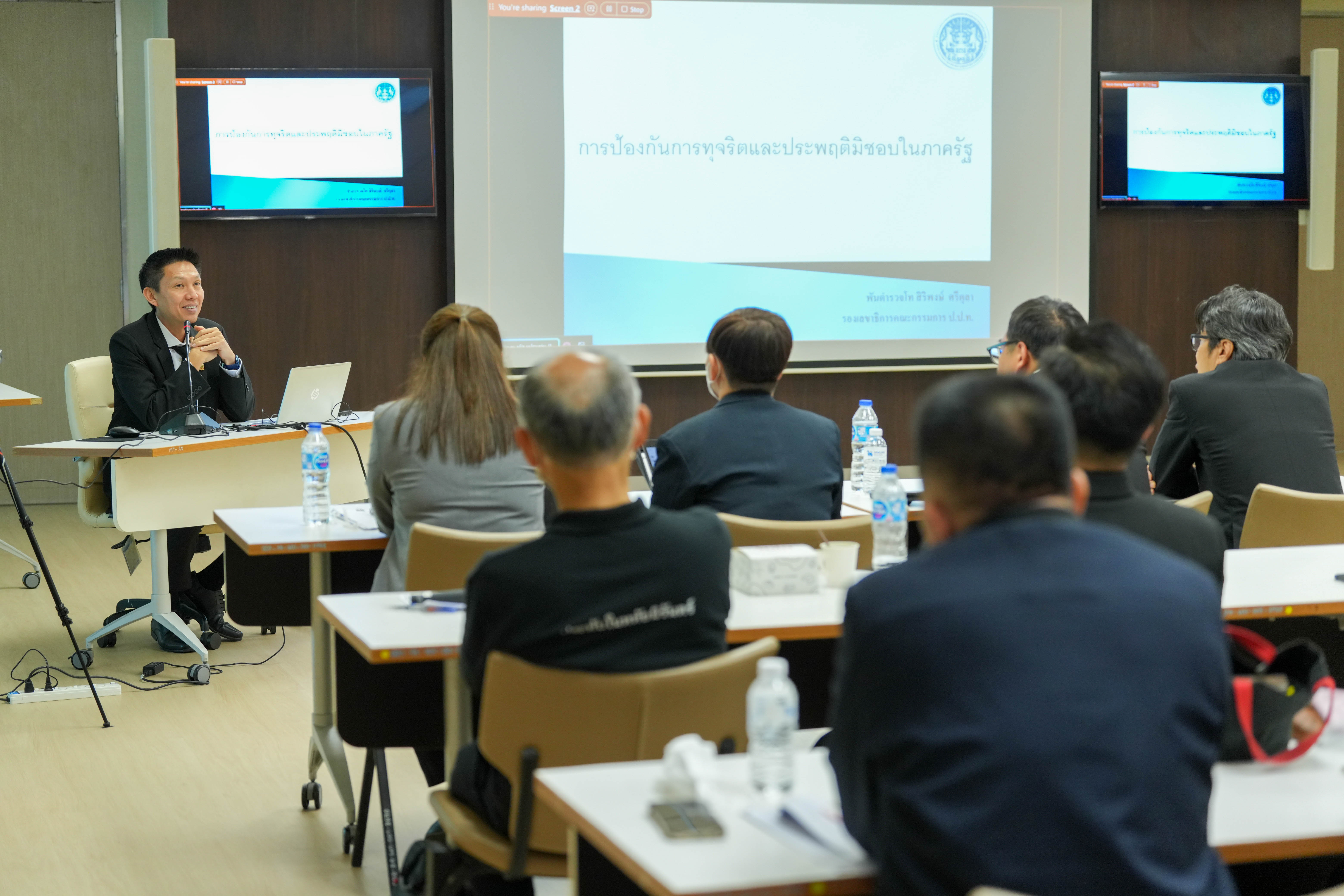 และเพื่อให้การอบรมมีความครบถ้วนในเชิงปฏิบัติ ได้รับเกียรติจาก พันตำรวจโท สิริพงษ์ ศรีตุลา รองเลขาธิการสำนักงาน ป.ป.ท. บรรยายหัวข้อ “การป้องกันการทุจริตและประพฤติมิชอบ” เพื่อให้ความรู้เกี่ยวกับรูปแบบความเสี่ยงการทุจริต แนวทางเฝ้าระวัง รวมถึงข้อควรระวังในการปฏิบัติหน้าที่ราชการ โดยเน้นหลักคิดสำคัญว่า “เชื่อใจได้ แต่ต้องตรวจสอบด้วย”