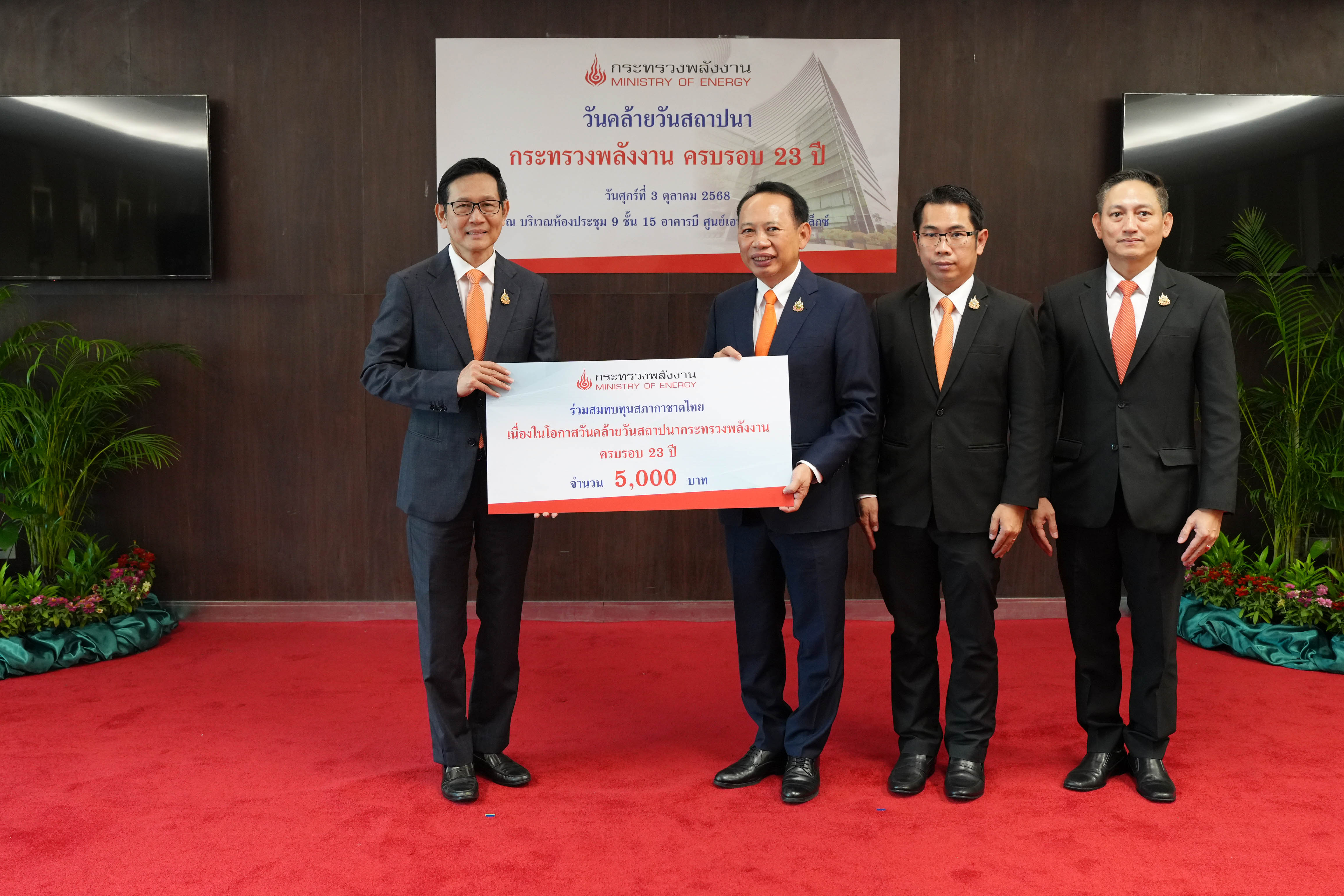 วันนี้ (3 ตุลาคม 2568) นายประเสริฐ สินสุขประเสริฐ ปลัดกระทรวงพลังงาน พร้อมด้วยผู้บริหาร ข้าราชการ และเจ้าหน้าที่ ร่วมพิธีสักการะพระพรหม และพิธีทำบุญ เนื่องในวันคล้ายวันสถาปนากระทรวงพลังงาน ครบรอบ 23 ปี พร้อมทั้ง มอบเงินสมทบทุนสภากาชาดไทย จำนวน 5000 บาท โดยมีนายอรรถพล ฤกษ์พิบูลย์ รัฐมนตรีว่าการกระทรวงพลังงาน เป็นประธานในพิธี ณ ศูนย์เอนเนอร์ยี่คอมเพล็กซ์ กระทรวงพลังงาน