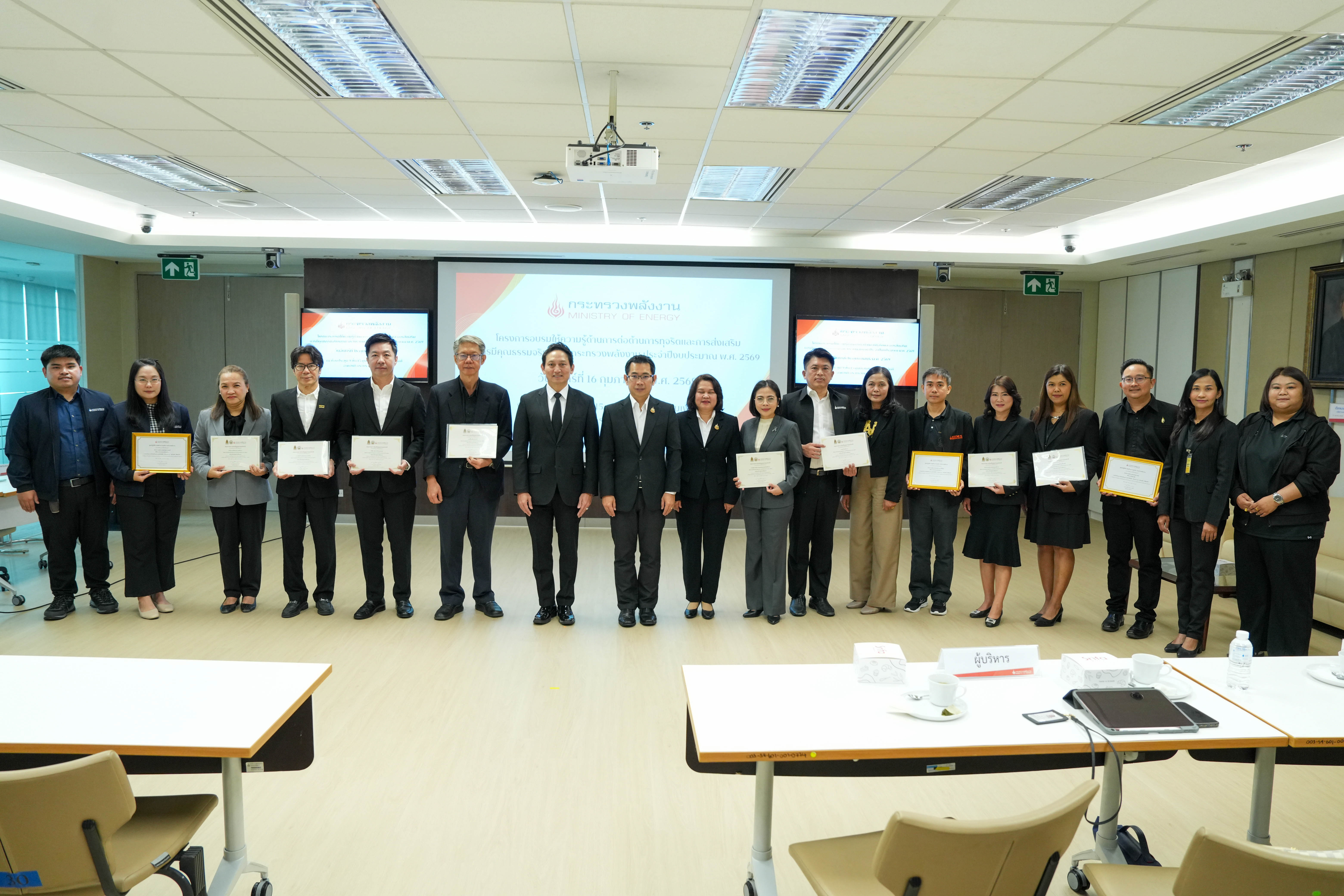 วันจันทร์ที่ 16 กุมภาพันธ์ 2569 นายวีรพัฒน์ เกียรติเฟื่องฟู รองปลัดกระทรวงพลังงาน และหัวหน้าศูนย์ปฏิบัติการต่อต้านการทุจริต กระทรวงพลังงาน (ศปท.พน.) เป็นประธานเปิด โครงการอบรมให้ความรู้ด้านการต่อต้านการทุจริตและการส่งเสริมการมีคุณธรรมจริยธรรมของกระทรวงพลังงาน ประจำปีงบประมาณ พ.ศ. 2569 ณ ห้องประชุม 9 ชั้น 15 กระทรวงพลังงาน โดยมีวัตถุประสงค์เพื่อเสริมสร้างความรู้ ความเข้าใจด้านคุณธรรมจริยธรรม และสร้างความตระหนักรู้เกี่ยวกับความเสี่ยงและรูปแบบของการทุจริต รวมถึงการเรียนรู้จากกรณีศึกษา เพื่อให้บุคลากรสามารถนำไปประยุกต์ใช้ในการปฏิบัติราชการได้อย่างถูกต้อง รอบคอบ และโปร่งใสยิ่งขึ้น