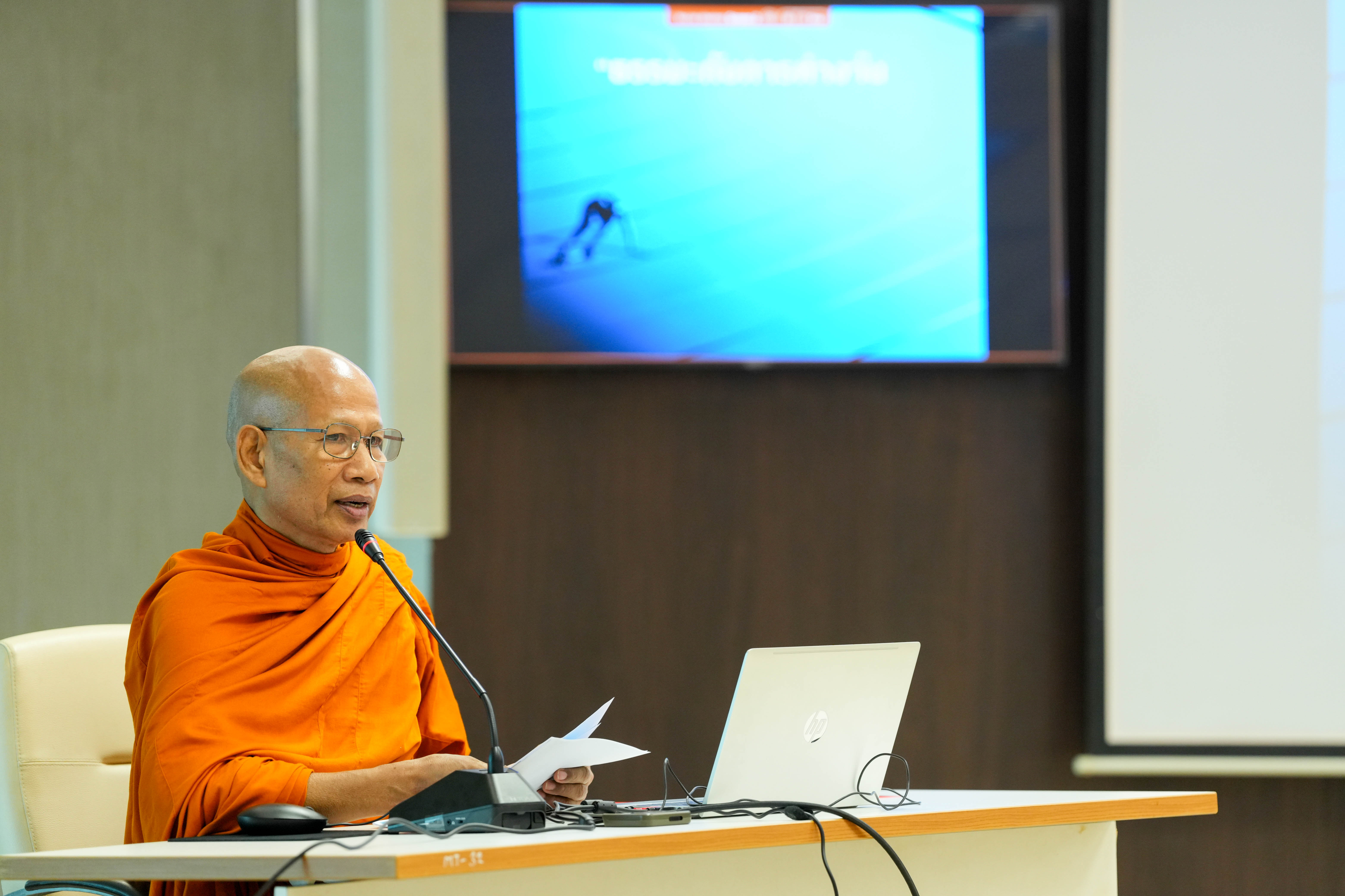 - พระครูภาวนาสิริวัฒน์ วิ.ดร. เจ้าอาวาสวัดแทนวันดีเจริญสุข บรรยายหัวข้อ “ธรรมะกับการทำงาน” ถ่ายทอดข้อคิดเพื่อเสริมสร้างจิตสำนึกและหลักคิดในการทำงานอย่างถูกต้อง โดยเน้นการ “คิดก่อนทำ” เพื่อให้บุคลากรยึดมั่นความดี มีสติ ในการเป็นพื้นฐานของการปฏิบัติหน้าที่